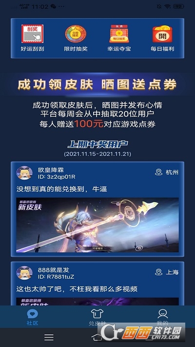 能够帮助大家领取各种游戏皮肤的手机软件,不管是王者荣耀皮肤还是和平精英皮肤都能够在这里进行兑换领取。