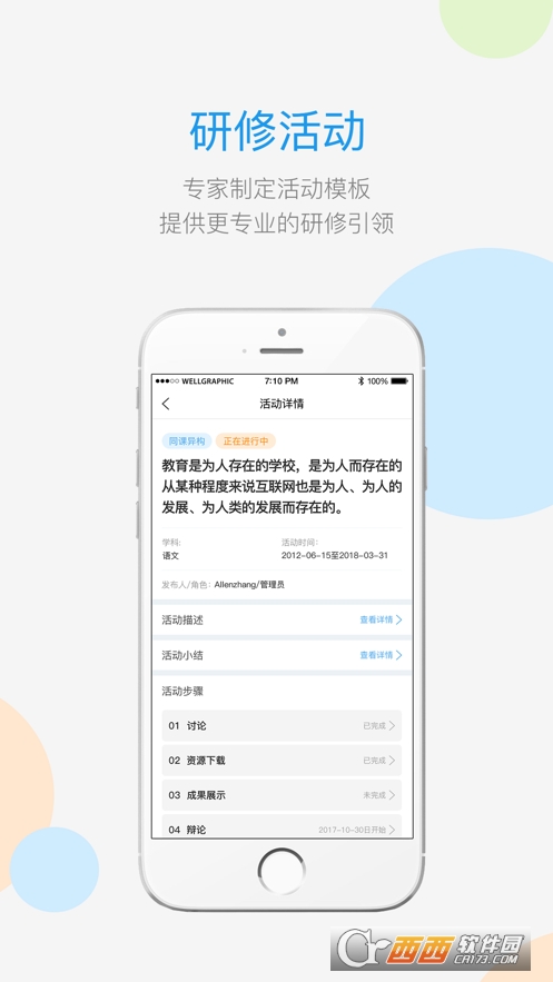 秉承“伴随教师终身学习,成就教师专业发展”的宗旨,充分利用互联网与新媒体,引进国内外先进的教育理念与优质教育资源,以专业引领、行动反思、同步互助为途径,将教师的终身学习、有效教学和深度教研三者有力结合,为中小学教师的专业发展提供系统培训服务。移动版应用,包含:新闻,图片,视频,项目四个栏目,涵括了教育领域近期动态,展示了我们的师资力量,视频中精选出的课程,以及微课程,让老师在移动应用中,继续学习,互相交流,共同提高。移动版学习管理app,方便教育管理机构实时掌握项目进展动态;建立快捷的交流互动通道,方便学员与辅导教师自由地讨论问题。同时具备强大的软硬件支撑能力,为用户在访问、查看和更新数据时的响应速度及并发访问量提供有力保障。