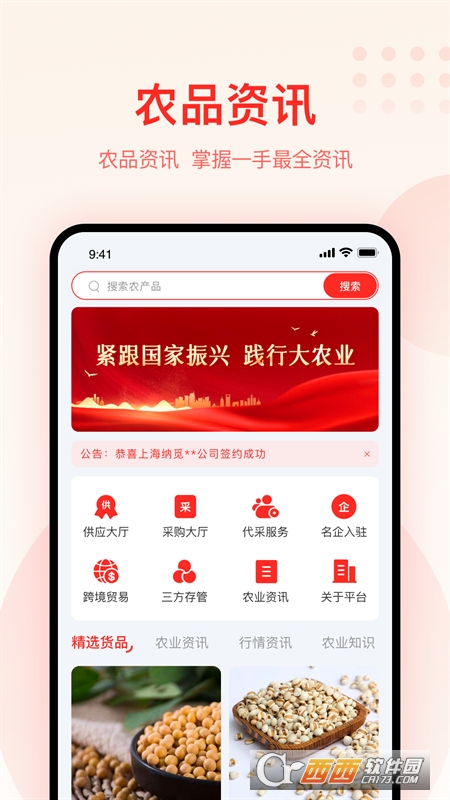 大圣农业平台是一款智慧农业服务平台,使用方法简单,在这里汇集了海量农品资讯,帮助用户掌握一手最全资讯内容,可以自由搜索农产品,进行了供应大厅、采购大厅、代采服务、名企入驻等专区,随时进行农业交易服务,鳄斗163手游网即可使用哦!