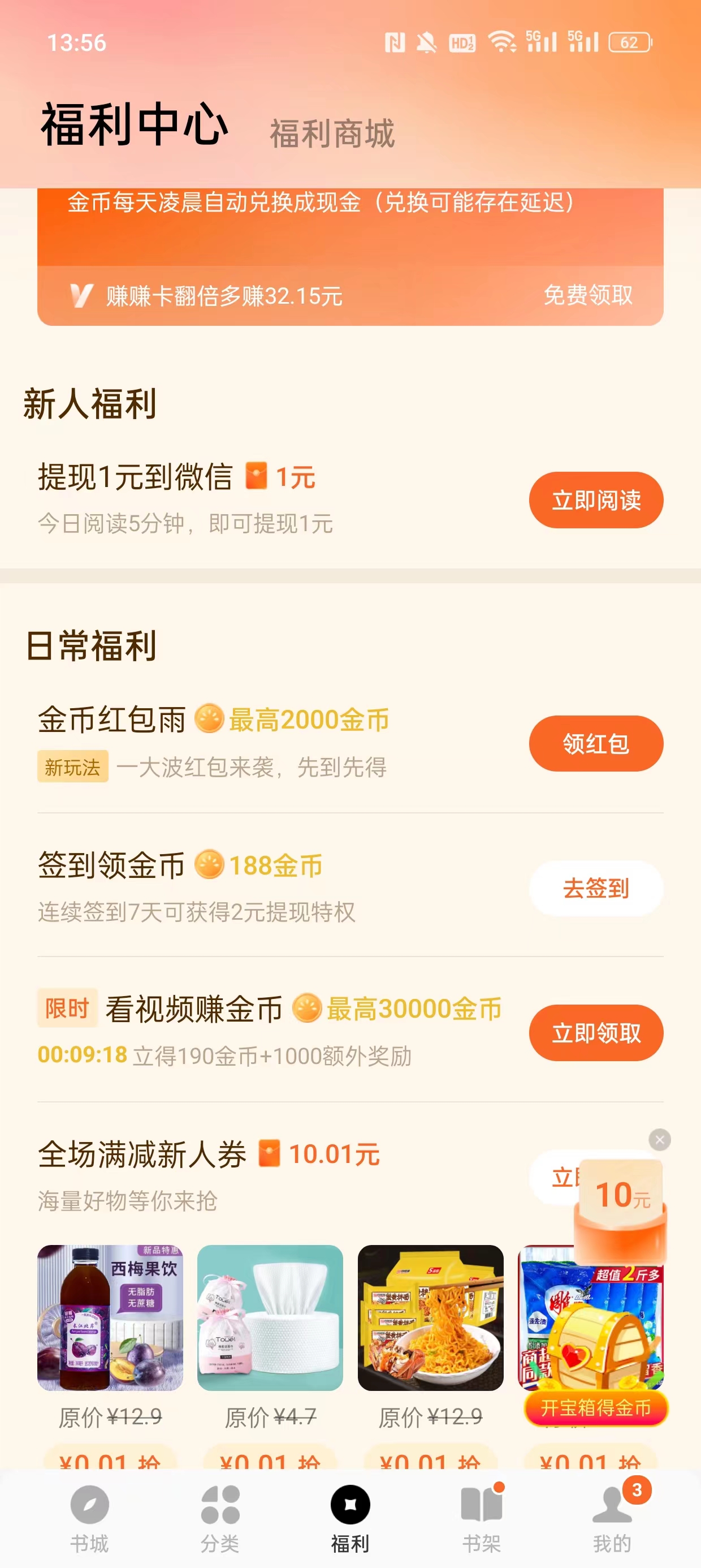 4、朋友获取你的邀请码之后,需要填写到他的客户端内,依然是在底部的“福利”点击,接着在新手任务里,有“填写邀请码xx”,我们点击旁边的“填写”。