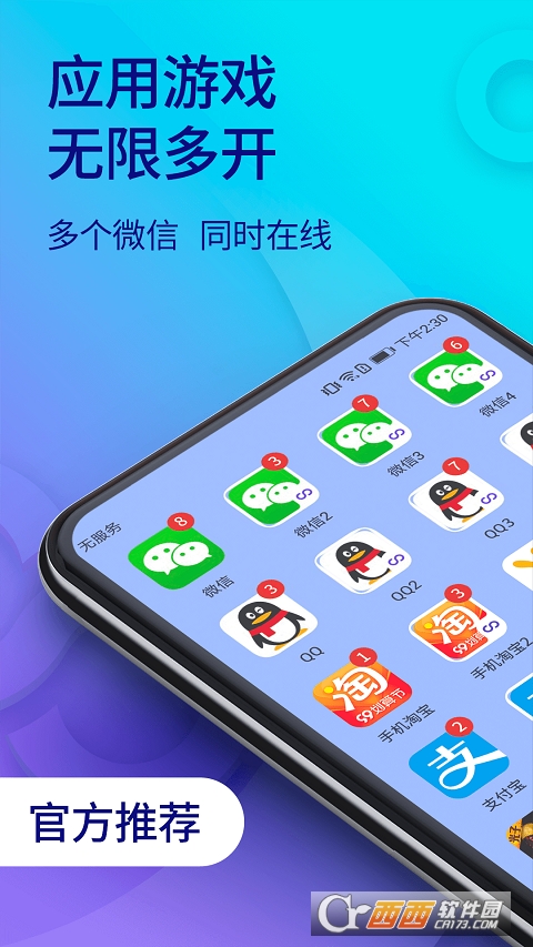 淘宝多开、支付宝多开、游戏多开等所有应用的多开分身!