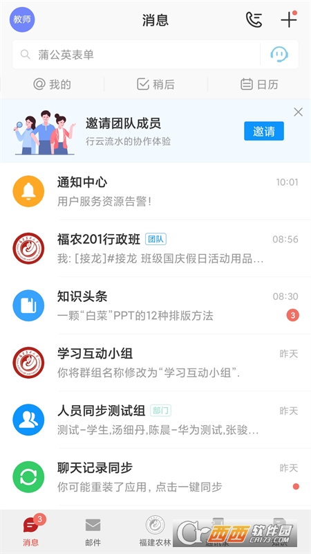2.校园消息通知:及时收到通知类消息。还可以建立会话聊天。