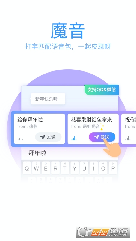 目前,QQ输入法上线了热门、情侣、萌宠、心情、小确幸、二次元等主题的动效聊天气泡,可以根据心情喜好选择以及随时切换,比如小编喜欢中二风格,希望聊天中带给朋友欢乐,毫不犹豫的选择【摇摆】。