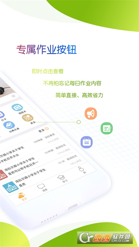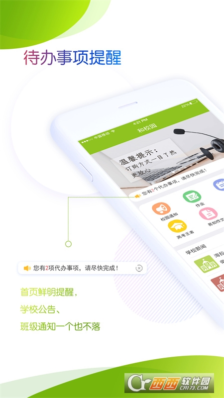 校讯通客户端是基于智能手机的个人终端应用。为老师提供日常教学管理平台,为家长提供学生的教育、学习、学校生活等各方面的信息,为学生提供学习、成长的综合应用,搭建起学校、家长、教师之间畅通的沟通桥梁。特色功能包括拍照分享、公告助手、班级圈等。
