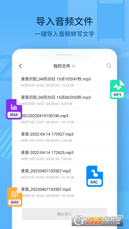 录音机功能不限时长高质量录音,会将您的录音文件保存在app内,用户可随时转换为文字