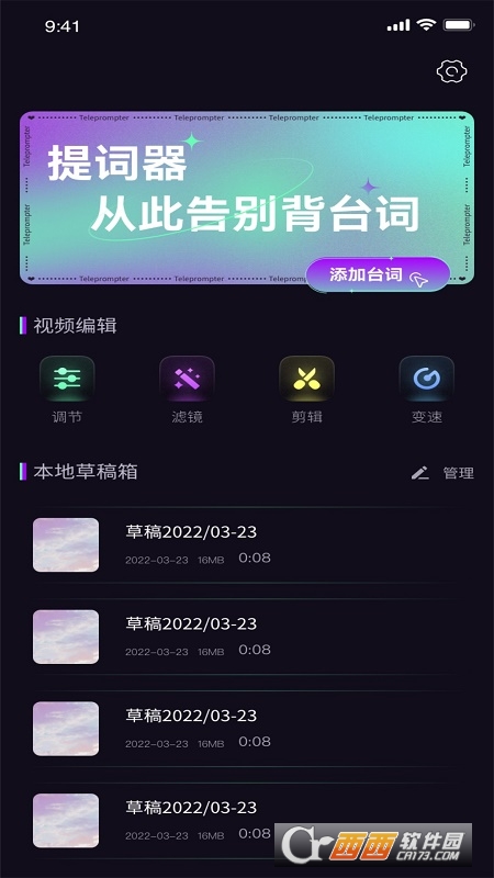 轻提词编辑器app是一款up主们都在用的vlog拍摄神器!只需将文稿粘贴到提词器App中,就能实现自动滚动播放,改变文字大小与文字颜色;让你在讲话时保持从容淡定,还能后期的视频调节编辑处理,让你更加完美的出场。
