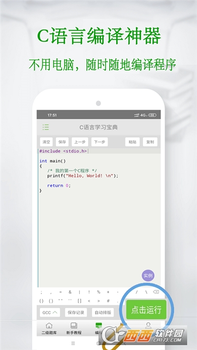 C语言学习宝典app是一款C语言编程学习软件,能够在这里帮助用户学习更多的知识内容,还有题库可以进行练习,实时查看C语言运行结果,随时可以修改内容,需要的伙伴,赶紧来鳄斗163手游网吧!
