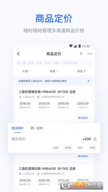 胖猫云app,胖猫云钢贸ERP系统,专业服务钢贸生意,整合了采购,订单管理,库存,销量统计,财务分析,钢贸行业数据走势,最新政策资讯等多方面资源,帮助钢贸行业管理员管理自己的业务,提高产业销量,让线上办公工作更加省心。本次带来胖猫云安卓app下载,从事钢贸生意行业的朋友们可以下载体验。