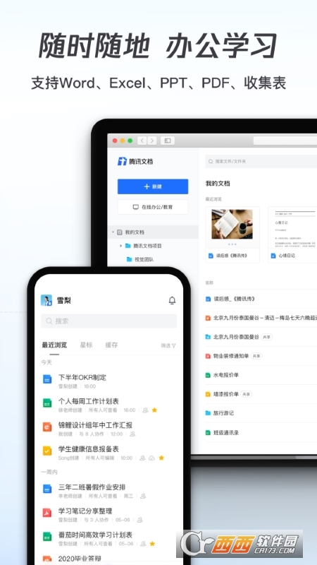 可上传手机本地文件至腾讯文档,随时随地在线查看或编辑。
