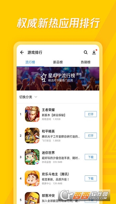 应用分类明确,提供下载量与各类热门排行榜供你参考。