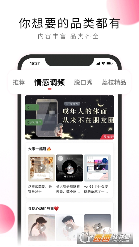 情感FM,有低沉沙哑、温柔亲切的男声,有知性治愈、酥软萌萌的女声,在线秒连线,在线倾听烦恼、排忧解闷。