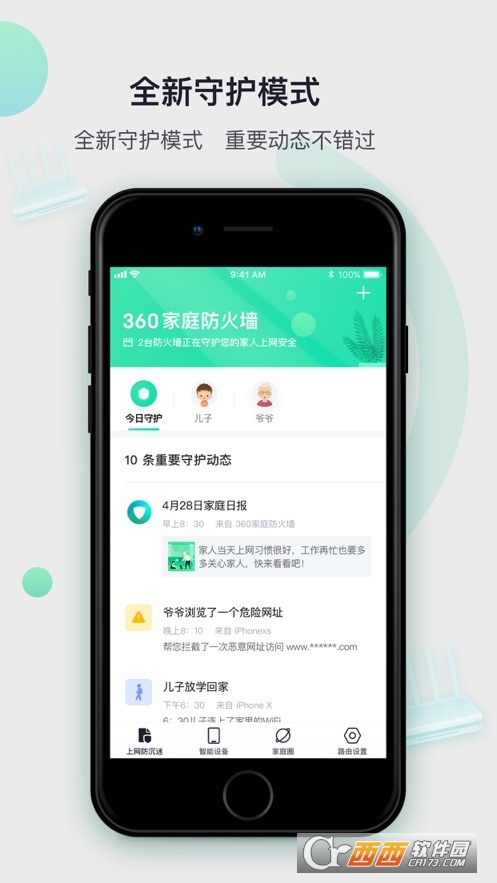 360家庭防火墙app是一款由奇虎360打造的家庭网络安全监测工具。用过360安全卫士的都知道有这个工具,不过那是电脑版的,现在这个是手机版的360家庭防火墙app,电脑上的功能手机版都有,2019新版的360家庭防火墙增添了多种防沉迷和监控功能,您可以自由的选择您想要的,使你可以更好的保障上网的安全,让你享受网上冲浪带来的乐趣!