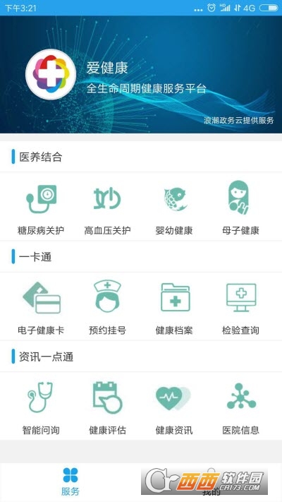 爱健康应用主要为用户提供健康评估,健康资讯,预约挂号功能,记录用户日常生理指标信息。对高血压、糖尿病等慢性疾病进行管理。对孕产妇、婴幼儿提供给专业的护理指导。集成电子健康卡,实现医院医疗业务一卡通的目标。