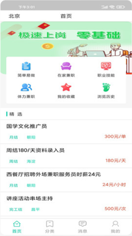 3,收藏历史,随时反馈,用户使用软件来进行各种工作的兼职获取,找工作更加方便,还可以遇到问题直接进行反馈,让后续的使用体验更加良好。