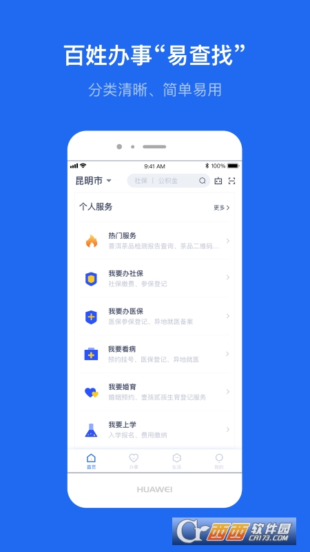 3.全新导航模块,将原有的5个底部导航模块整合为“首页”、“办事”、“生活”、“我的”4个模块;