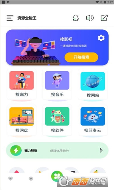 1、资源全能王名副其实的一款全能资源搜索应用,帮助大家更快速的搜索所需资源;