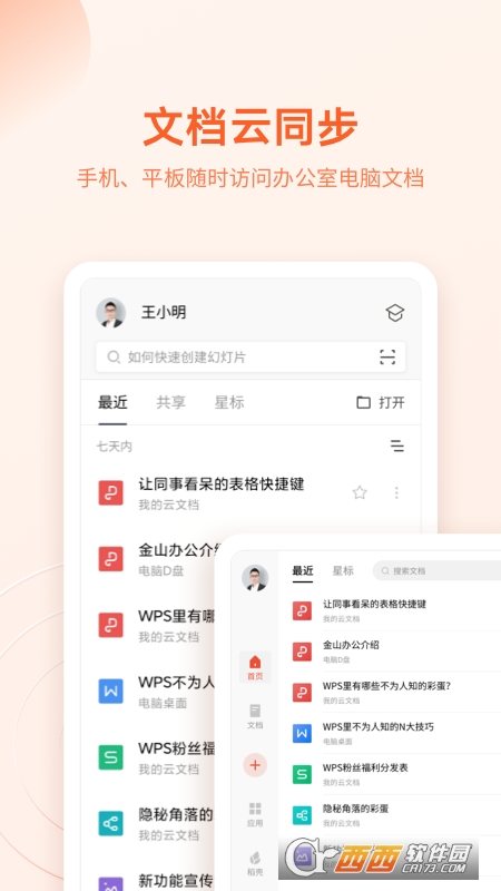 -支持文档漫游,开启后无需数据线就能将打开过的文档自动同步到您登录的设备上;