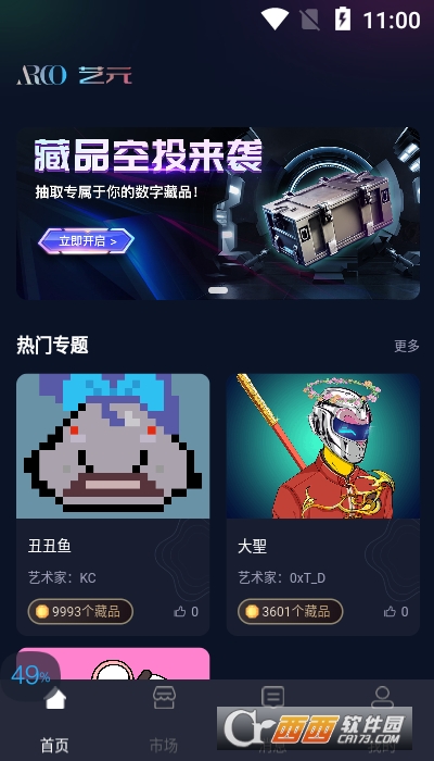 艺元艺术app是一款专门为数字藏品爱好者开发的移动应用,用户可以在集市上面欣赏到很多的潮流人气作品,还可以根据分类进行查询,查看数字藏品发售日历,并进行线上预约,需要的可以来鳄斗163手游网艺元艺术app进行使用