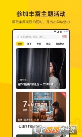 3、参加比赛活动,创建兴趣圈子,让你遇见更多摄影师和摄影爱好者。让你在交流摄影心得,掌握摄影技能的同时,轻松获得收益。