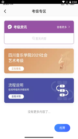 1,艺术考级,数据丰富,川音艺术考级app中建立了非常专业的艺术考级模式,让用户自己可以及时处理不同类型的变化和情况说明,处理需求和办理材料更加简单。