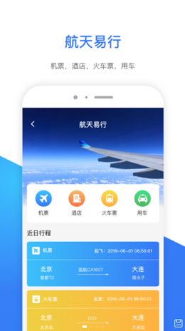 1,出行服务,内容完善,航天易行app中建立了非常完整的出行服务内容,让所有用户可以更加简单的进行各种内容的传递和使用,轻松的进行预订往返,处理更加便捷。