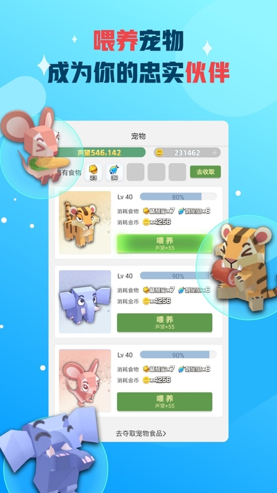 3.百变衣柜:可以通过收集服装碎片、找个跟班打工获得图纸、抢夺邻居或好友获取材料来制造喜欢的服装,打造自己个性十足的衣柜。