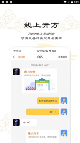 2,通过高级的模式设计,软件中医生和用户进行沟通的方式多种多样,不仅可以进行更加简单的互动和交流,随时发送图片以及文字,增加医生判断的准确度,管理更加轻松。