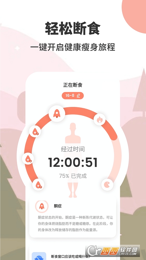 怪瘦轻断食是一款减肥类型的app,用户在这款怪瘦轻断食app里面可以帮助您更简单,更快速地减轻体重,并且还能够在你轻断食期间为你提供正确的饮食方式以及饮食时间,避免节食的情况发生,并且你还可以查看你在线的周报以及一些数据都是为您记录的十分详细,感兴趣的小伙伴可以来下载怪瘦轻断食app来试试!