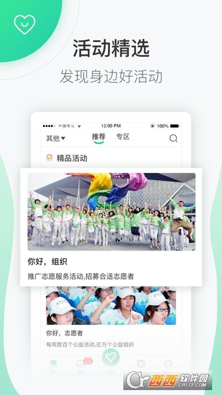 “志愿汇”定期推荐精选公益活动,同时,志愿者可根据自己的需求与兴趣,自主筛选公益活动。