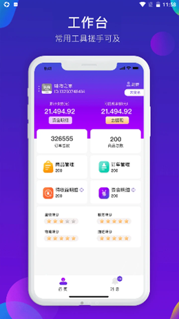 2,工作台的界面上建立了非常齐全的管理模式,所有的数据动态内容都可以更加简单的进行同步管理,无论是商品还是收付款订单都可以进行更新,管理起来更加简单。