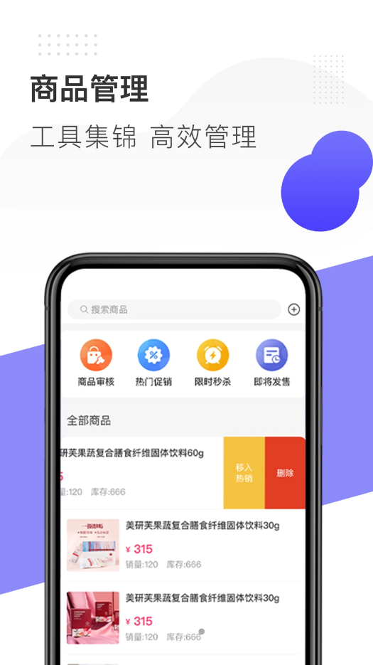 3、商品资讯内容都可以在平台上进行调整和管理,还可以在这里直接开启销售或者是热卖活动,这样就可以更加轻松地和其他的商品进行管理;