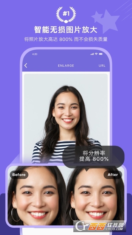 - 更快更强的照片无损放大:轻松将照片放大2倍,4倍,8倍,制作4k,8k甚至16k高清图片