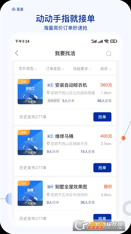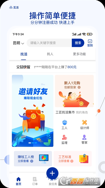 觅活服务端是一款专业的装修服务平台,专为该行业服务人员设计的软件,在这里汇集了找活、找人等服务,还有其他功能专区,需要用户注册认证使用,轻松接单抢单,还可以实时了解行业资讯内容,该平台汇集了多种装修服务,鳄斗163手游网即可使用哦!