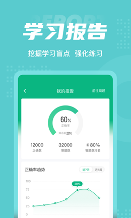 3,刷题模块,统计模式,用户在软件中可以更加简单的来选择不同类型的题库进行刷题,所有的数据都可以进行及时上传统计,方便用户来进行及时整理进步。