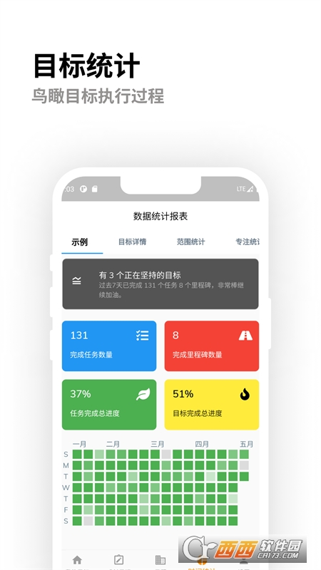 【量化统计】通过可视化热力图,实践范围统计,目标专注统计,周期对比统计等统计方法量化和记录目标。