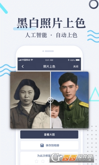 使用人工智能技术,通过大量老照片上色案例,精确还原符合场景的颜色。