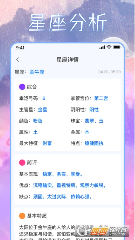 星座屋APP提供详细查询每个星座自己独特的特性,星座是个很神奇的东西,虽然不一定那么科学,但为我们的生活带来了很多乐趣,可以预知到未来的一些生活和故事,很有趣。
