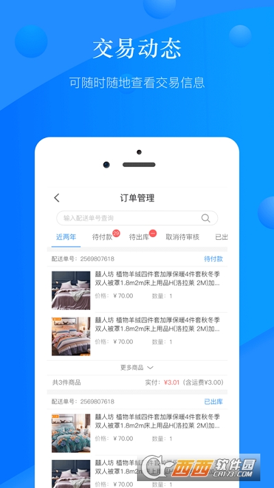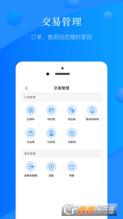 5.交易管理:近两年订单、待付款、待出库订单查询,及订单详情查看;
