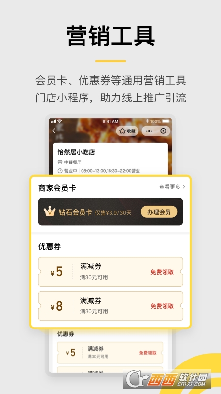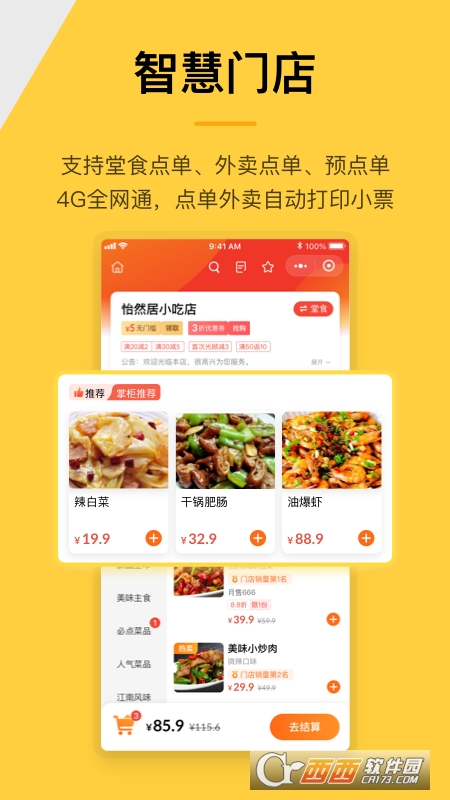 5、平台内完整自营外卖系统对接专业的第三方配送服务,开启语音播报系统每笔收款心里有数;