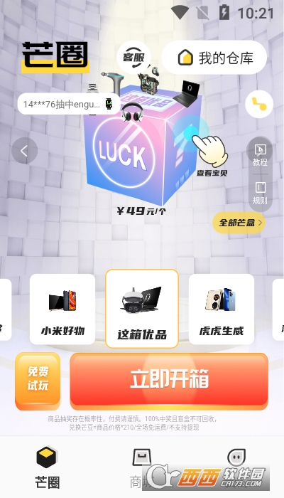 芒圈app是一款非常不错的盲盒购物应用,软件里面每天都会精选很多潮流好物,涵盖了潮流手办、电子数码、新潮球鞋等多种宝藏物品,随机盲盒全凭运气,产品都能保障质量,需要的可以来鳄斗163手游网芒圈app进行使用