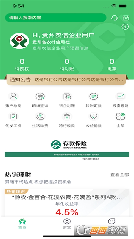 黔农云•企业版是一款贵州农信企业用户服务软件,在这里可以实时接收通知公告,汇集了账户总览、明细查询、银企对账、转账汇款、投资理财、代发工资、生活缴费、跨行收款等方面服务,支持用户关键词搜索内容,需要伙伴,鳄斗163手游网使用吧!