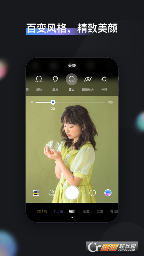 美颜已成为拍摄常态,瘦脸、磨皮、美白、眼睛放大不仅能自定义调节尺度,还能一键Ai智能美颜,轻轻松松留住最美的你。