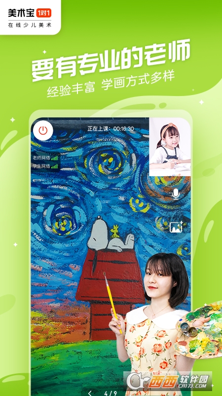 美术宝1对1通过1对1在线视频的方式,让宝宝在家就能学画画,帮助小朋友有效学习和掌握画画能力和技巧,提升宝贝的对事物的审美和美术的应用。
