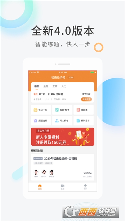 经济师快题库是一款经济专业知识学习软件,在这里汇集了海量的专业知识内容,拥有直播讲堂和海量精选课程内容,用户可以在这里选择海量题库练习,并且可以随机出题,需要的伙伴,可以在鳄斗163手游网使用哦!