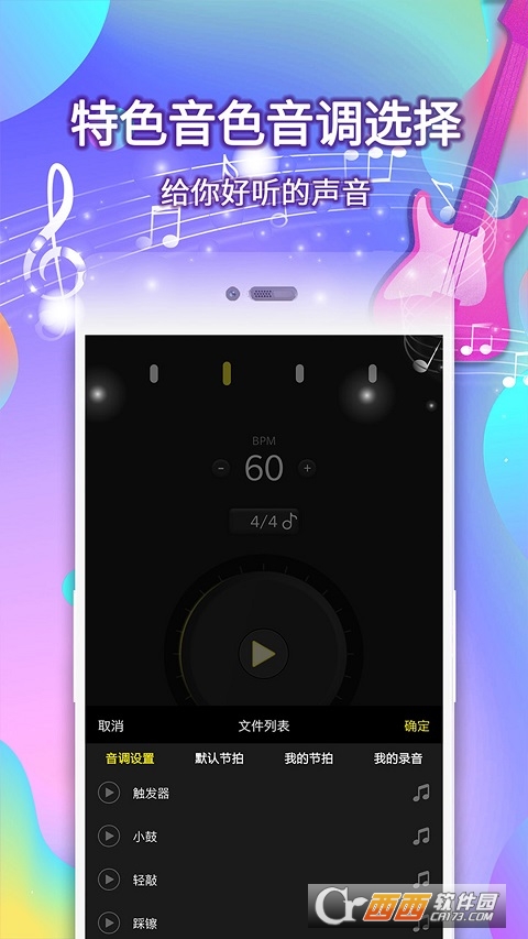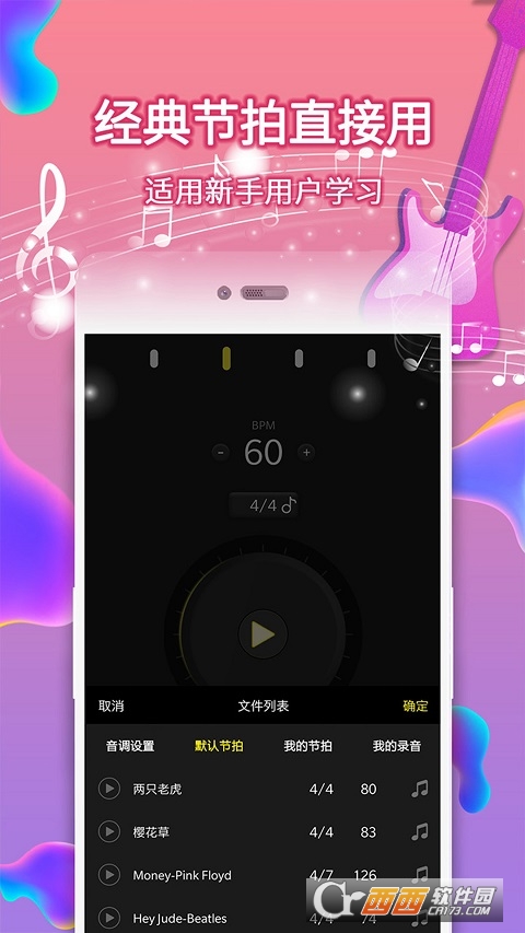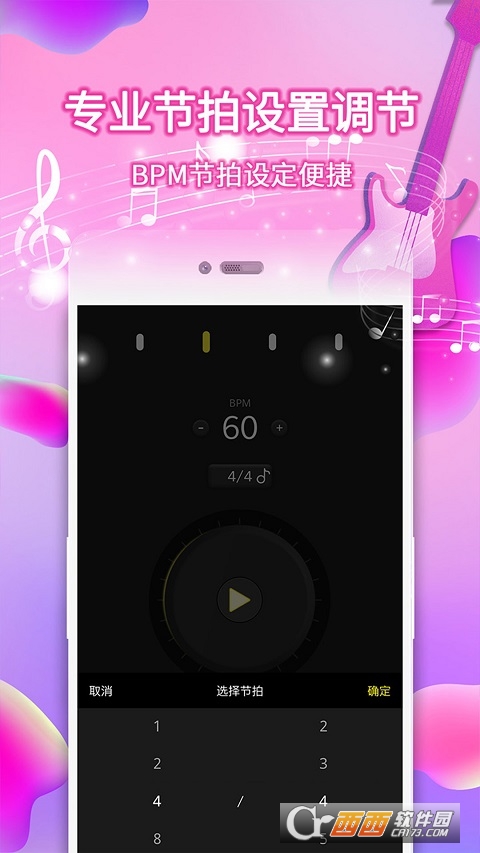 电子节拍器最新版是一款手机节拍器软件,全程使用没有广告,让用户使用更加流畅,对于喜欢音乐的伙伴来说,节拍器是不可少的,支持多种乐器音色,随时进行调节,需要的伙伴,可以在鳄斗163手游网哦!
