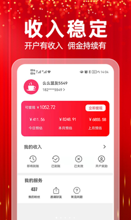 3,轻松体现,随时搞定,用户自己来进行软件中的各种功能模式来进行管理和使用时,佣金随时都可以在钱包中进行上传到账,管理起来更加简单。