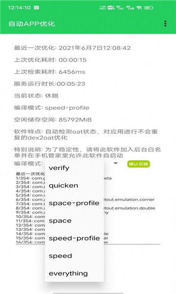 原理是,使用预编译技术,安卓目前常见的编译类型:verify、quicken、space-profile、space、speed-profile、speed、everything。效果从字面上比较好理解,越后面的类型编译时间越长,占用的空间也越大,运行时打开速度也越快。自动APP优化-目前 everything 的编译效果是最好的,同时也是占用手机容量空间最大的,这种模式其实就是牺牲内存空间来换取流畅和省电,也就是说手机里面的应用阅读优化的时间越久,占用的内存就会越大。并且编译结果不可逆,想要恢复容量,需要恢复出厂设置。