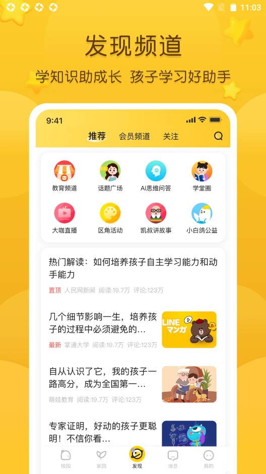 3、在孩子的成长过程中遇到的问题,都可以在平台上找到相关的信息,通过学习来让孩子平稳地度过成长期吧,而且还可以加入到孩子的班级群里,和其他的家长们一起讨论教育;