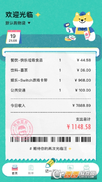 软件的界面页面设计的非常可爱,有十分生动的柴犬动物形象陪伴了用户的记账全程,可以让用户在软件功能的使用同时获得很多的乐趣。