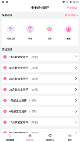 2,发育评测,及时了解,用户在软件中可以更加轻松的来进行评测,可以了解孩子的各种成长变化,可以更好的进行呵护,方便来进行管理。